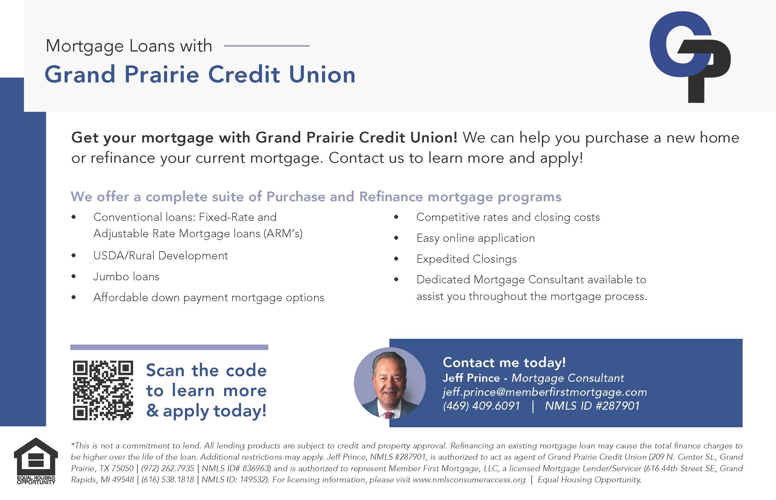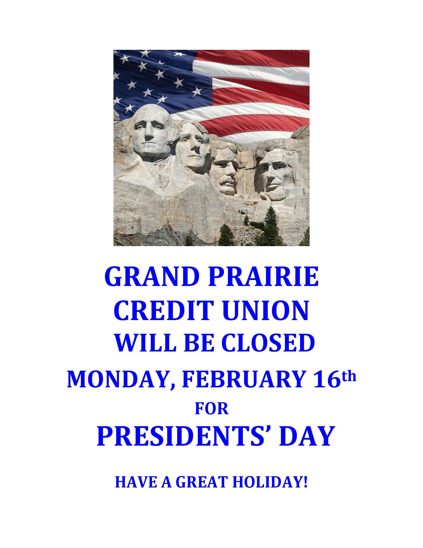 We thank you for allowing us the opportunity to continue working for you and your financial well-being. Thank you for your membership with Grand Prairie Credit Union.