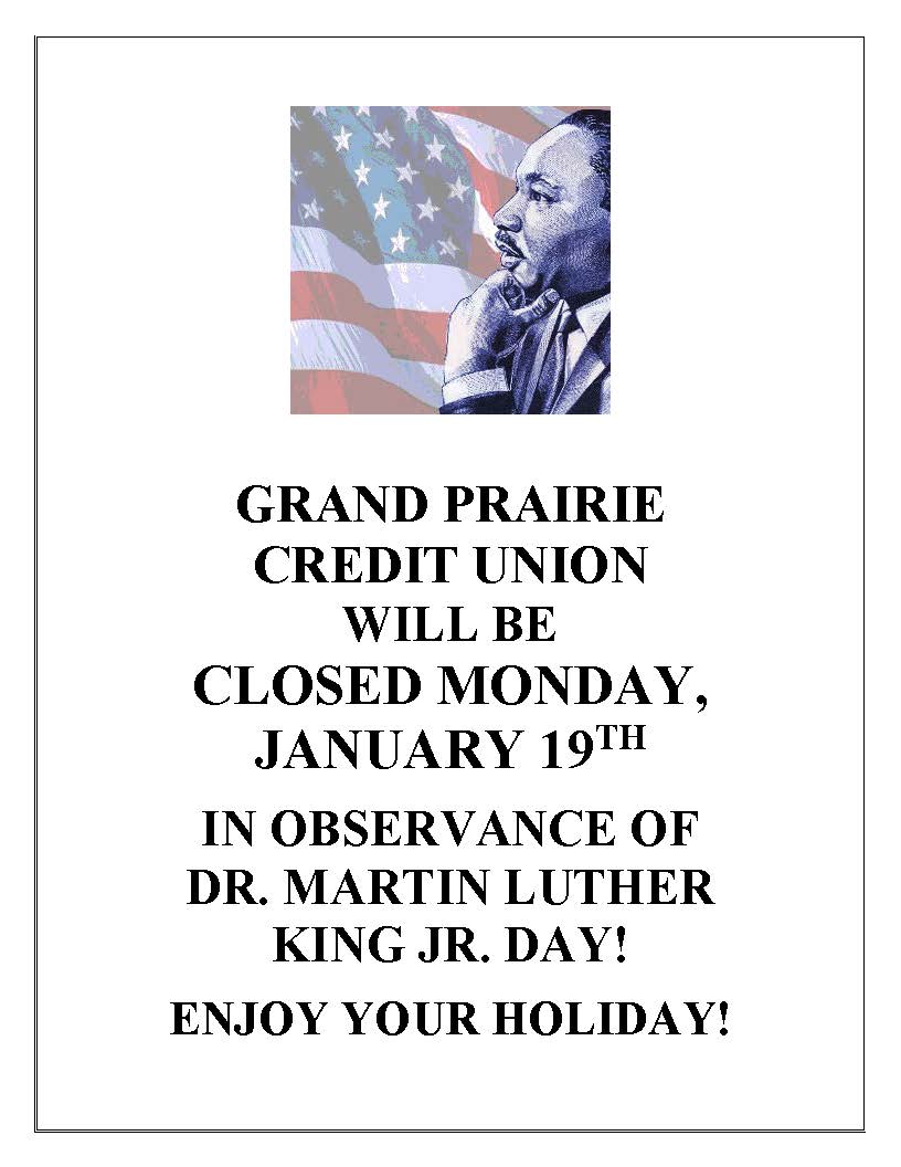 We thank you for allowing us the opportunity to continue working for you and your financial well-being. Thank you for your membership with Grand Prairie Credit Union.